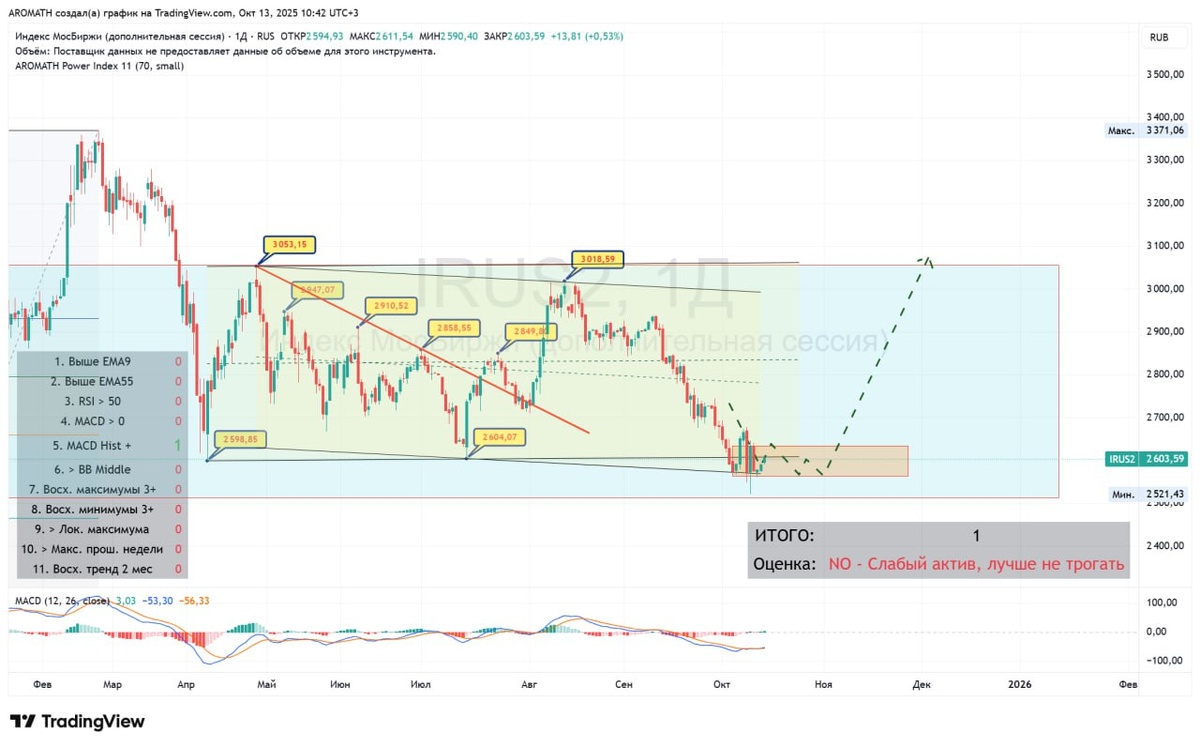 Индекс силы Aromath Power Index =1 при отбое от нижней границы канала и при сентименте ниже пола в индексе Мосбиржи. Голосуем. Разворот в индексе #IMOEX2 ? Да 🏆💯 Нет 👀
