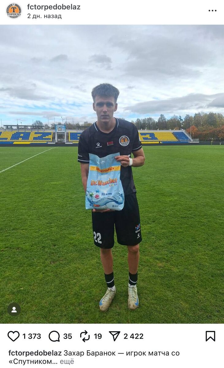 В ответ на пост Освоили. Мы много говорили здесь, что кринж-награды в спорте – рабочий инструмент продвижения. Но белорусский ФК «Торпедо-Белаз» пошел по принципу: чем больше кринж, тем громче новость. И это работает. После награды в виде сырых шампиньонов, другим футболистам матча вручали сертификат на шаурму и 9 кг стирального порошка. Итог: такие посты клуба собирают в разы больше охватов + разлетаются по крупным медиа в СНГ и зарубежом. Смотрим дальше за этой кринжатиной стратегией. 🔥 – молодцы 💊 – клиника ПРО маркетинг в спорте