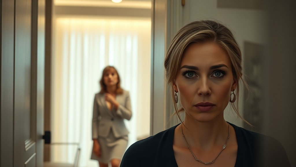 Краска схлынула с её лица. Она стала белой, как полотно. Идеальная укладка, дорогое платье, бриллианты в ушах — всё это вдруг стало выглядеть дешёвой бутафорией на смертельно испуганной женщине.