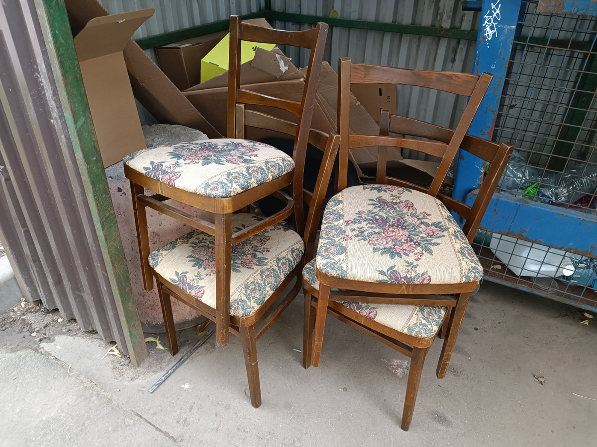Неделя вышла удачной для кладоискателей. Даже слишком - опять хотелось воскликнуть "Горшочек, не вари"😂Но " горшочек" обычно к просьбам глух и делает, что ему вздумается, а ты только пользуйся моментом да собирай богатства🤣 Вон и читателям моим везло, как на подбор. Хотя, возможно, секрет такого изобилия в том, что я теперь вынуждена гулять хотя бы по три часа в день, а просто же гулять мне скучно🤷♀️Вот и гуляю мимо Клондайков😂. Чего вдруг я стала гуленой, и как это должно меня избавить от проблем со здоровьем рассказывала подробно в "Премиум"😘👇 Винтажные стулья сыпались все эти дни как из рога изобилия. Эту четвёрку я встретила у дома буквально через пару часов после возвращения в Москву. И, к счастью, сразу нашла среди читателей в Телеграм им новый дом. Стулья потом выдавались в ассортименте почти ежедневно. Современные. Винтажные советские. Винтажные румынские и чехословацкие - я под конец уже сбилась со счета и перестала их даже фотографировать. Повезло только парочк