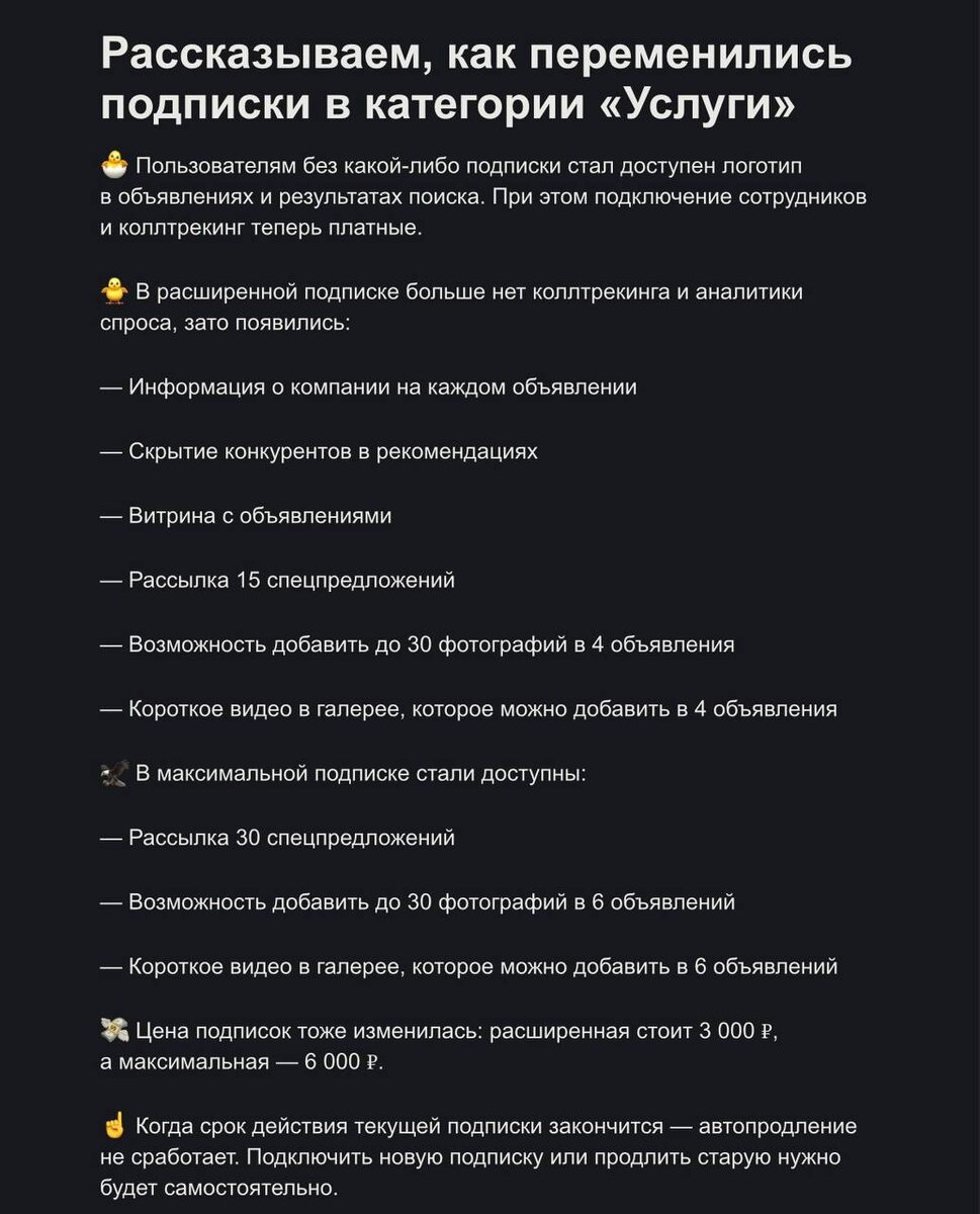 ☝️Это напоминание об изменениях в подписках. Касается категории «Услуги». Изменения уже вступили в силу. Всем отличного начала недели!) 😎Горбачёв | Подписаться