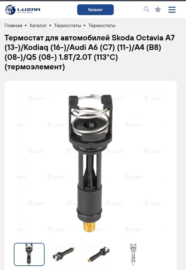 Термостат (термоэлемент) 113 °C для VAG 1.8T/2.0T Подходит для: Skoda Octavia A7 (2013–) Skoda Kodiaq (с 2016 года) Audi A4 (B8) (2008–) Audi A6 (C7) (2011–) Audi Q5 (2008–) Двигатели: 1.8 TSI / 2.0 TSI Зачем менять: Стабильная рабочая температура, корректная работа печки Меньше расход топлива и нагрузка на двигатель/турбину Решение типичных проблем: долгий прогрев, «плавающая» температура, ошибка P0128 Что получаете: Термоэлемент 113 °C (оригинал/проверенные аналоги) Гарантия совместимости по VIN-коду Сертификаты на запчасти Рекомендации при замене: Новые уплотнения/прокладки Замена антифриза (G12++/G13), прокачка системы Доставка и оплата: Иваново - самовывоз/курьер По РФ - ПВЗ/ТК Промокод YAGOFRE: бесплатная доставка по Иваново при первом заказе Оплата: карты/СБП, безналичный расчёт Как заказать: Напишите в Telegram @emkonline и пришлите VIN/фото СТС - мы подберем точный артикул за 10 минут Укажем варианты: оригинал, премиум-аналог, эконом Цена: по запросу *(зависит от бренда