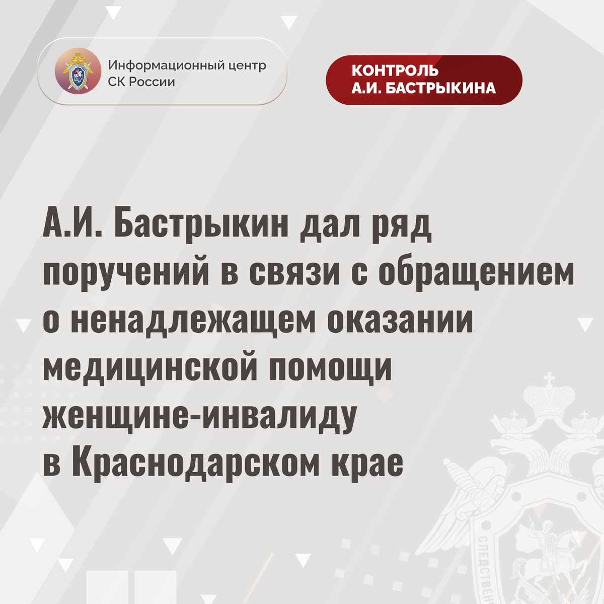 А.И. Бастрыкин дал ряд поручений в связи с обращением о ненадлежащем оказании медицинской помощи женщине-инвалиду в Краснодарском крае