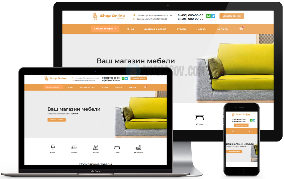 Готовый интернет-магазин «Продажа мебели» от веб-студии ANANASOV.COM — идеальное решение для вашего бизнеса