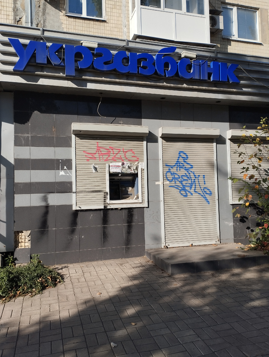 Все коммерческие банки, включая Сбер, Альфа и другие российские вкупе с международными, спешно закрыли все свои многочисленные отделения в Донецке ещё летом. Государственный Ощадбанк продержался гораздо дольше. Его закрытие в разных районах города началось 17 ноября 2014 года. Как это происходило? Ну, как обычно. Вдруг сотрудницы вышли на свои рабочие места, чтобы привести в порядок все необходимые документы, которые предстояло подготовить к вывозу на подконтрольную территорию вместе с какими-то наличными деньгами, но посетителей в отделения впускать прекратили. Когда люди настойчиво стучали в дверь или в окно, кто-то с той стороны рассказывал, что уже ничем помочь не могут, осуществлять какие-либо операции более не имеют возможности, а что делать в этом случае, и сами ещё не знают. Таким образом все жители Донецка в один момент лишились доступа к своим сбережениям. Большая часть из них, конечно же, была пенсионного возраста. Ну, люди старшего возраста привыкли доверять только госу