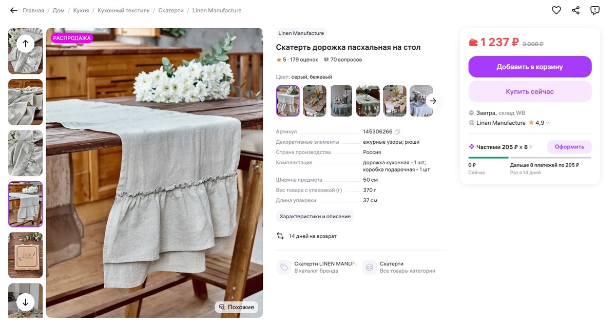 Лён - материал живой, «дышащий», с особым характером. Он прочный, долговечный, приятный на ощупь и обладает антибактериальными свойствами. Такая дорожка идеально подойдёт не только для кухни, но и для праздничного стола - будь то Новый год, семейный ужин или просто душевные посиделки.