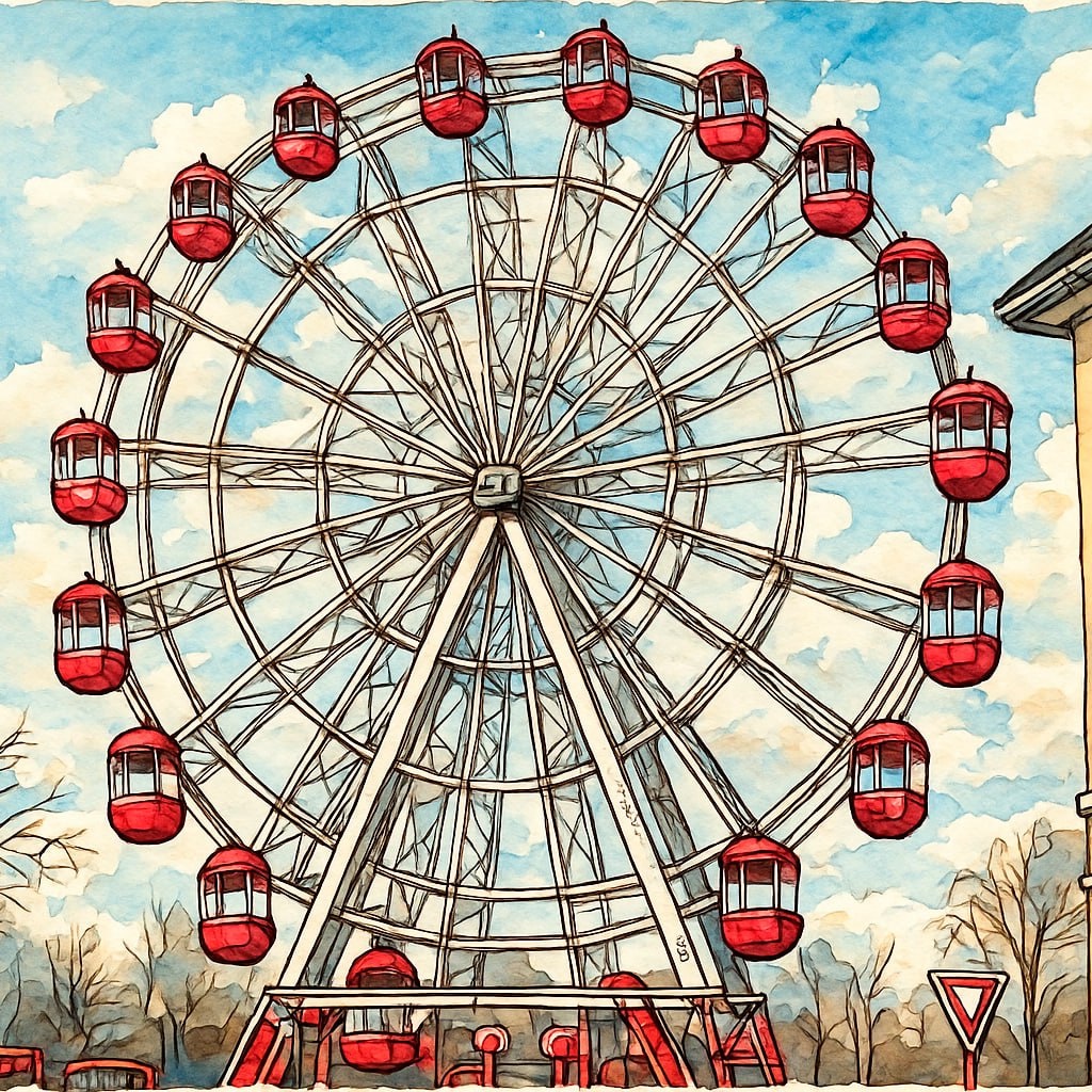 «Чертово колесо» в Гродно появилось в 1970-х в Коложском парке. Аттракцион высотой с восьмиэтажный дом проработал до конца 80-х. После его разобрали.