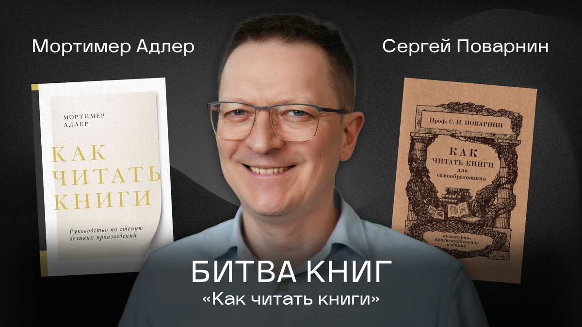 Каждый из нас думает, что умеет читать. Мы читаем блоги, сообщения, меню в ресторане, книги. Но правда в том, что книги нужно читать по-другому. Большинство из нас делает это неправильно. Сегодня я разберу две книги с одинаковым названием — «Как читать книги». Это два подхода с разных континентов: Какая из книг подойдет именно вам? Давайте разбираться. Книга вышла в 1940 году и с тех пор многократно переиздавалась — признак ценности: она выдержала испытание временем. Автор — выдающийся ученый и философ; он 20 лет был связан с энциклопедией Британника, которую Илон Маск, кстати, прочитал три раза. Впечатление. Автор системный и методичный, местами суховат и уходит в отступления, но это лучшая методика для чтения сложного нон-фикшн. В конце — список 100 великих книг, которые, по мнению Адлера, стоит прочитать каждому. Книга небольшая, выросла из университетской лекции 1916 года. Стиль логика: короткие главы, один тезис — одно объяснение, без воды. В отличие от Адлера, Поварнин пишет не т