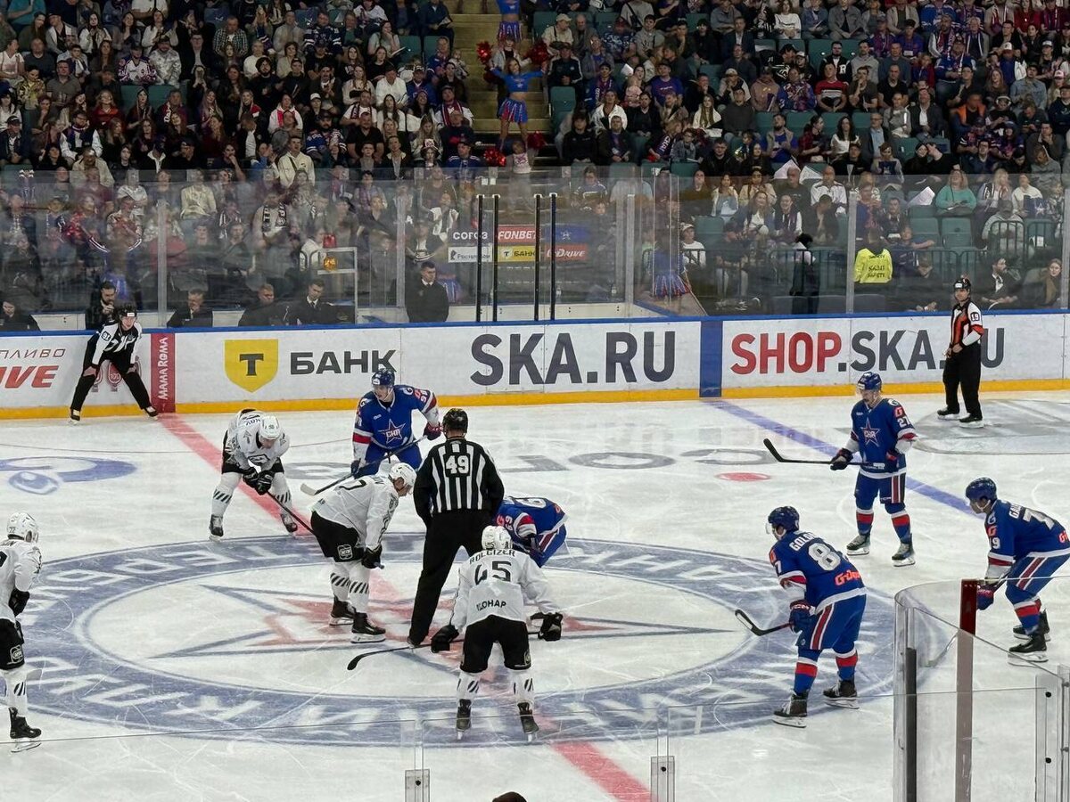 Выбор матча я доверила мужу: он предложил сходить на игру СКА — «Трактор». Серьезный соперник: в прошлом году команда из Челябинска дошла до финала Кубка Гагарина. Матч начинался в 19:30. После работы можно было спокойно добраться до Ледового дворца. Хоккейная атмосфера ощущалась сразу, как мы подошли к арене: фанаты в шарфах, футболках и другой одежде с атрибутами СКА — все на позитиве.