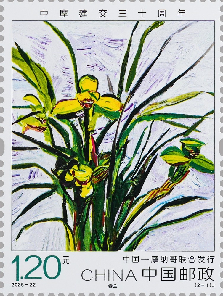 К 30-летию установления дипломатических отношений между Китаем и Монако 15 октября 2025 года Почта Китая выпустила серию из 2 памятных марок с названиями: «Весенняя орхидея» и «Колокольчик». Номинальная стоимость полного комплекта марок составляет 2,40 юаня, а планируемое количество марок – 4,5 млн комплектов. С момента установления дипломатических отношений между Китаем и Монако китайско-монакские отношения неуклонно развиваются, обе стороны придерживаются взаимного уважения и равного отношения, став образцом дружественного сосуществования и совместного развития стран разного размера, разной истории и культуры, разных социальных систем. В этом наборе марок используются цветы с национальными особенностями и глубокими культурными коннотациями двух стран. Китай выбирает весенние орхидеи с долгой историей выращивания, а Монако выбирает красивые и динамичные колокольчики, которые подчеркивают внутреннюю ценность и духовное стремление экологической цивилизации. Эти две марки несут в себе г