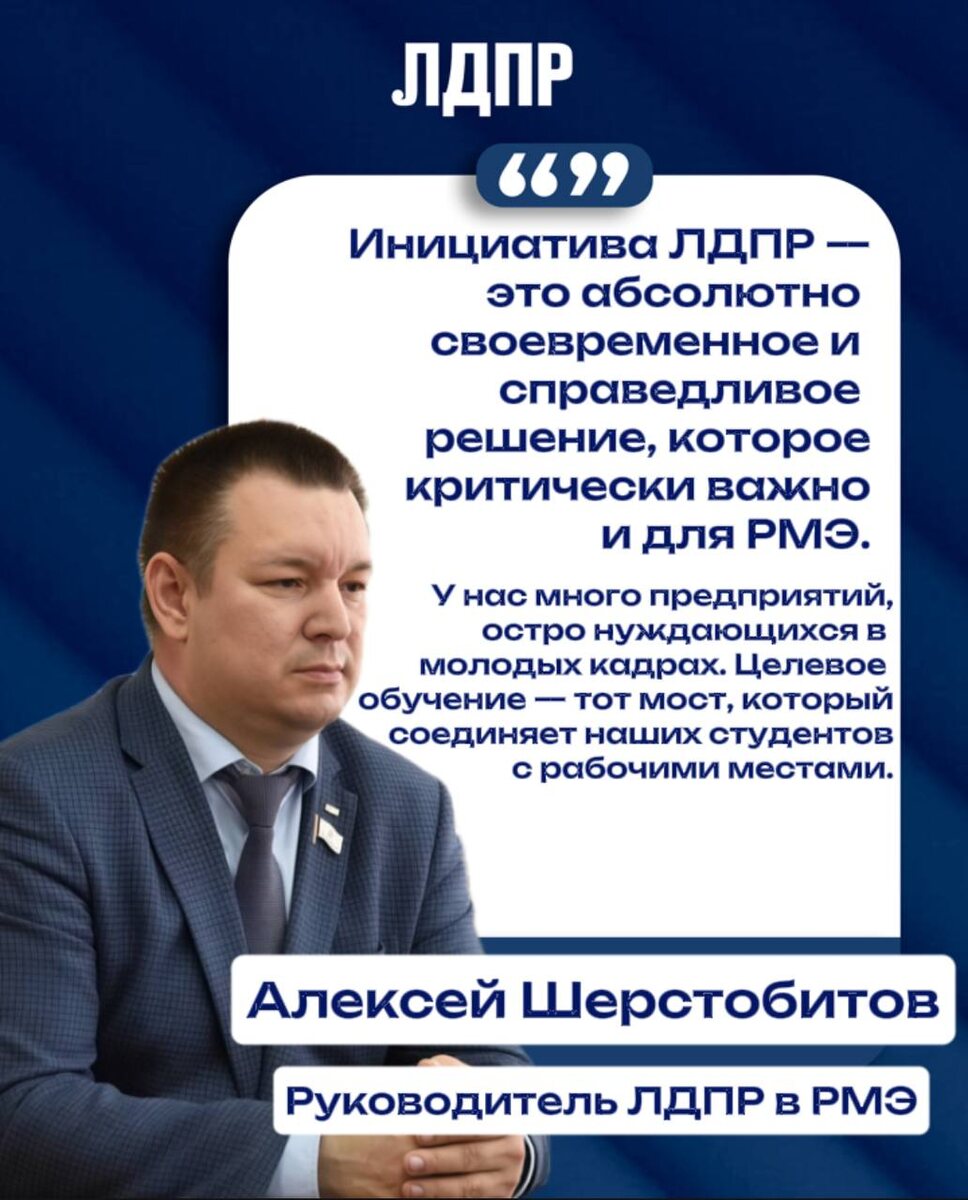 «Целевое обучение студентов – это один из ключевых инструментов Новой индустриализации. Предприятия остро нуждаются в молодых кадрах. Это благое дело, и его надо всячески поощрять. Если государство взяло курс на инновационное обновление страны, надо помогать во всём тем, кто готовится этот процесс осуществлять».