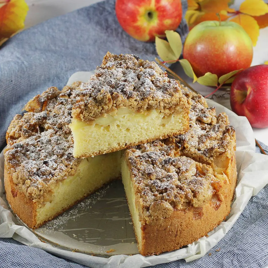 Необычный способ испечь очень вкусный и красивый пирог с яблоками. 2 стакана муки 5 средних яиц 200 гр. маргарина 170 гр. сахара 2,5 чайные ложки разрыхлителя 1 кг яблок 150 гр. муки 100 гр. сахара 100 гр. сливочного масла или маргарина чайная ложка корицы Заранее достаньте из холодильника яйца. Они должны быть комнатной температуры. Растопите на водяной бане или в микроволновке маргарин для теста до жидкого состояния, затем остудите. Застелите дно формы бумагой для выпечки и смажьте бортики оставшимся маслом. В одну миску поменьше насыпьте муку, добавьте две с половиной чайные ложки разрыхлителя. Яйца взбить с сахаром. Соединить с растопленным маргарином и затем с мукой. Переложите тесто в форму и разровняйте поверхность. Очистите все яблоки и разрежьте их на четвертинки. Удалите сердцевину и нарежьте четвертинки яблок кубиками размером примерно 1,5 см.