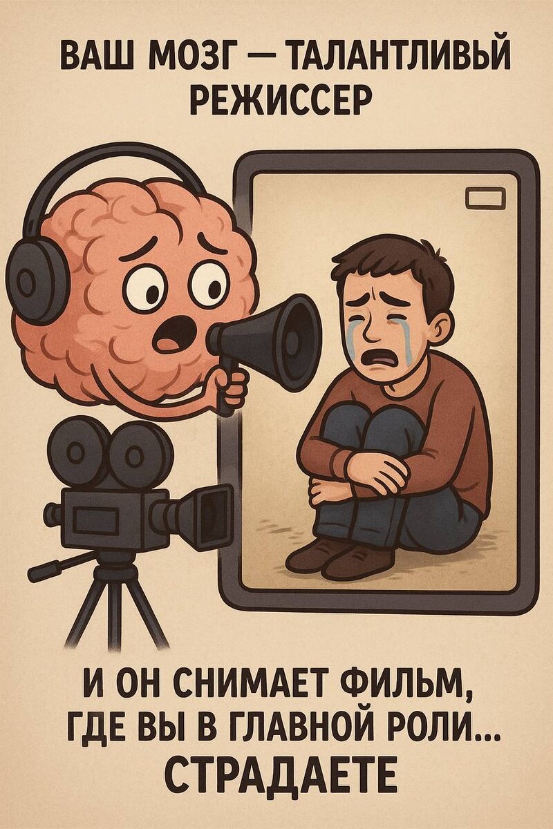 Народ, всем доброго дня.🥳🥳🥳 Ну и пойдем в сценарии, а потом в игры и еще про отношения!🤓 Все чаще и чаще, особенно осенью, у людей уменьшается гормон счастья и появляются они..... 🧑💻Ваш мозг — талантливый режиссер. И он снимает фильм, где вы в главной роли... страдаете.😭 Ведь без страдания мне никто, никогда, ничего не даст и не поможет(слезы ручьем, напряжение, стиснутые кулаки). 😎 Вы когда-нибудь замечали, как раз за разом оказываетесь в одной и той же неприятной ситуации? 💫 🆘 Знакомьтесь: Это ваше «автопилотное мышление». Наш ум — гениальный мастер по созданию ловушек. Он не злодей, он просто пытается защитить нас, основываясь на старом опыте. Но результат часто один — мы попадаем в накатанные сценарии. Вот 😘 частые ловушки разума с примерами из жизни: 🪤 Ловушка 1: «Я ДОЛЖЕН» Мозг обожает правила. Но когда «хочу» превращается в «должен», начинается стресс. Пример: «Я должен быть идеальным родителем, иначе я плохая мать/отец». Ребенок устроил истерику в магазине