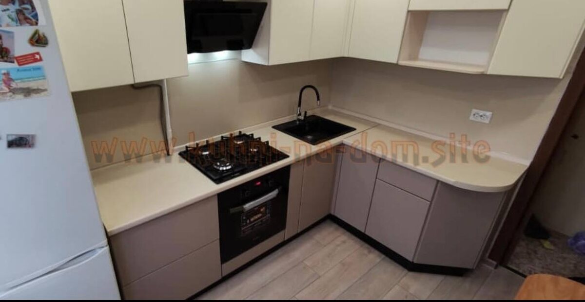 Угловая кухня в современном стиле CREMA BATIDA Современная угловая кухня CREMA BATIDA была изготовлена по индивидуальному проекту для установки в квартире в г. Серпухов. Фасады гарнитура изготовлены из МДФ в плёнке ПВХ очень нежных цветов Stone SE - 014 ADILET Маргари и Stone SE - 013 ADILET Мисандея. Светлая кухня в интерьере - это классика, нежные оттенки легко комбинируются между собой, поэтому можно не переживать, что кухня станет неактуальной или надоест. Столешница изготовлена от производителя СОЮЗ тоже в светлом оттенке Семолина карамельная 2237М. Заказать проект кухни или записаться на замер kuhni-na-dom.site