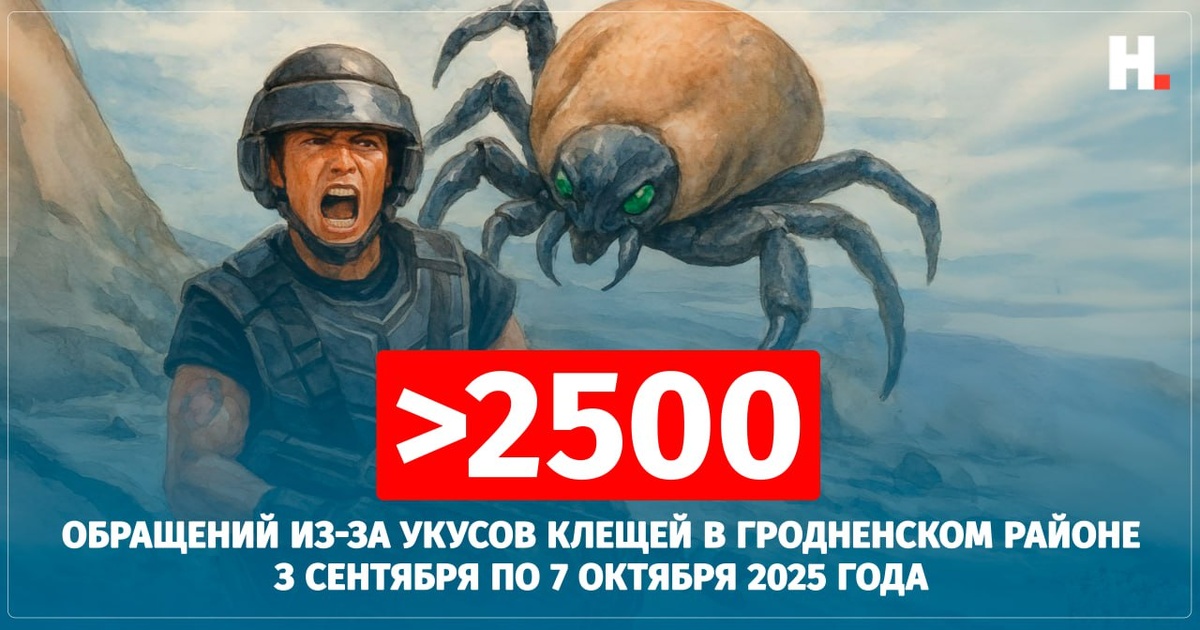 🐛Осенняя активность клещей: более 2500 обращений в 🦬 Гродненском районе В Гродненском районе зафиксировано более 2500 обращений по поводу укусов клещей. По данным Гродненского зональный центра гигиены и эпидемиологии, чаще всего жалобы поступали от людей, пострадавших на территории Коптевского, Подлабенского, Поречского, Озерского и Сопоцкинского сельсоветов, пишет Перспектива. Немало случаев отмечено и в 🦌Гродно. По состоянию на 7 октября в областном центре зарегистрировано 1361 обращение. #числодня