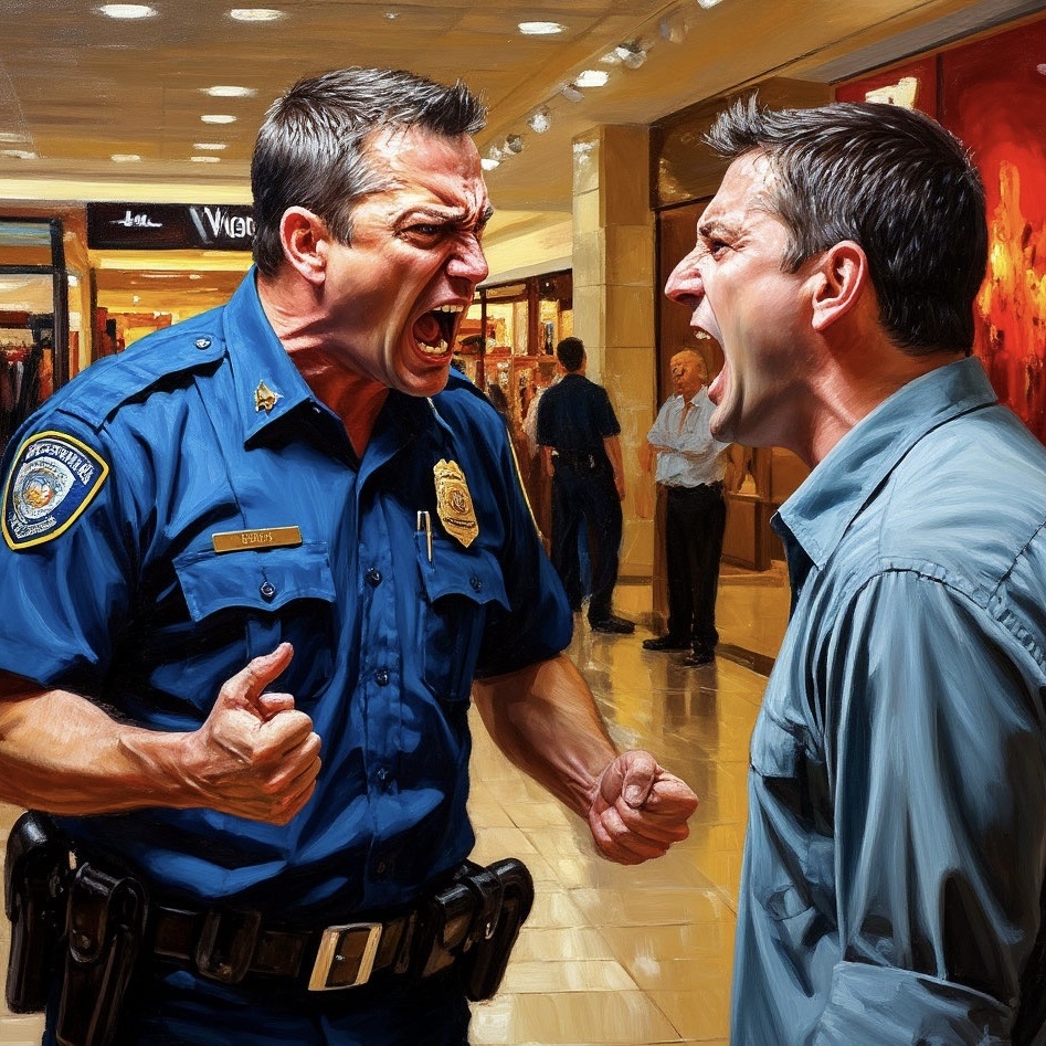 Охранник снова захохотал, привлекая внимание посетителей. Люди оборачивались, с любопытством наблюдая за конфликтом.