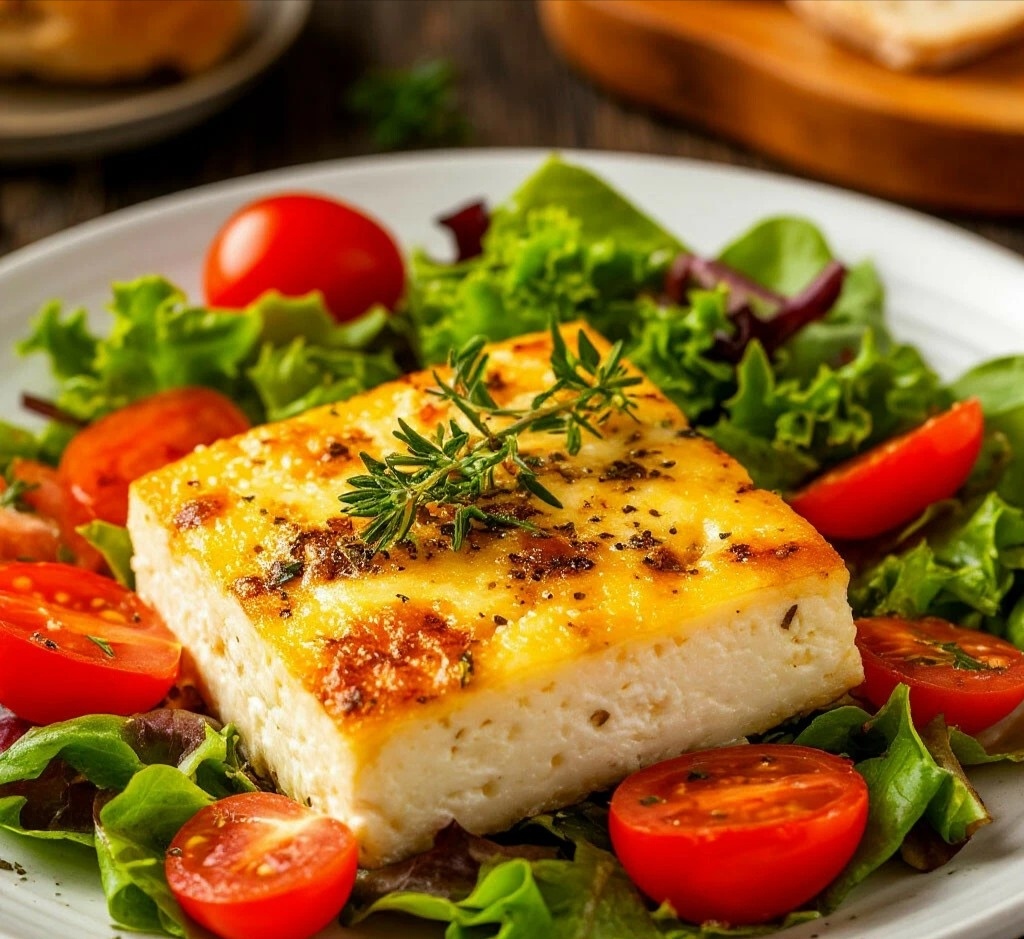 РЕЦЕПТ — ЗАПЕЧЕННЫЙ АДЫГЕЙСКИЙ СЫР С ОВОЩАМИ Мяу, мои любители изысканных закусок! 😺 Этот теплый салат — это когда скромный адыгейский сыр надевает свой праздничный наряд и выходит в свет! Подрумяненный, ароматный, он просто тает во рту. Обязательно попробуйте! ЗАПЕЧЕННЫЙ АДЫГЕЙСКИЙ СЫР С ОВОЩАМИ И СОУСОМ "ЦЕЗАРЬ" 🧀 ИНГРЕДИЕНТЫ (на 2 порции): 🧾 · Сыр адыгейский — 1 шт. (около 200 г) · Помидоры черри — 200 г · Салат романо или айсберг — 1 небольшой кочан · Оливковое масло, соевый соус, паприка — для маринада · Для соуса "Цезарь": · Йогурт без добавок (или майонез) — 4 ст.л. · Тертый пармезан — 2 ст.л. · Чеснок — 1 зубчик · Вяленые томаты (или 1 ч.л. каперсов) — 1 ст.л. · Лимонный сок, соль, перец — по вкусу ВРЕМЯ ПРИГОТОВЛЕНИЯ: ⏰ 25 минут СЛОЖНОСТЬ:🐾 Нужна небольшая сноровка ПОШАГОВЫЙ РЕЦЕПТ: 👩🍳 1. Запекаем сыр. Духовку разогрейте до 200°C. Адыгейский сыр нарежьте крупными кубиками. Смешайте с оливковым маслом, соевым соусом и паприкой. Выложите на противень вместе с п