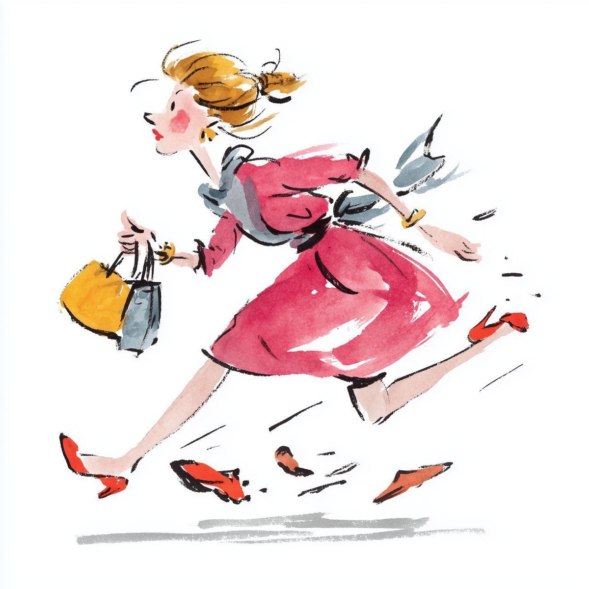 Причём сносит на пути всё — и каблуки, и сумку, и очередь в туалет.