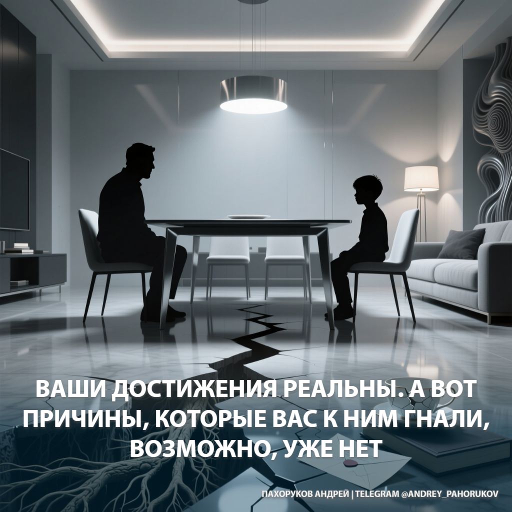 За ужином ваш сын-подросток вдруг спрашивает: "Пап, а ты вообще счастлив?". И в наступившей тишине вы понимаете, что ответа у вас нет. Снаружи — всё как надо. Свой бизнес, который кормит семью. Дом. Машина. Уважение. Вы — человек, который "всё смог". Но внутри — едкое чувство фальши. Раздражение на жену, которое вспыхивает на ровном месте. Ощущение, что вы смотрите на свою жизнь через толстое, грязное стекло. И вы начинаете искать решение. Идете к бизнес-коучам, читаете книги про лидерство. Они говорят вам: "Ставьте новые цели! Масштабируйтесь! Будьте эффективнее!". И это худшее, что можно сделать. Потому что вам пытаются продать еще одну дозу того самого яда, которым вы и так отравлены. Давайте начистоту. То, что привело вас к успеху — это не ваша гениальность и не сверхспособности. Это был мощнейший двигатель, который вы собрали в юности. Он работал на высокооктановом топливе из страха, стыда и лютой потребности доказать. Доказать отцу, что вы не неудачник. Доказать парням из старого