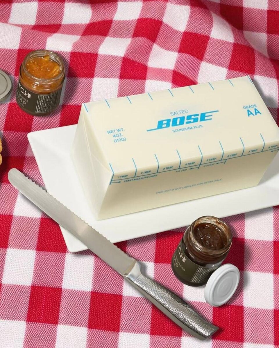 Цвет сливочного масла настолько в тренде, что BOSE взяли и выпустили колонку в нежном оттенке, стилизовав упаковку под брусок сливочного