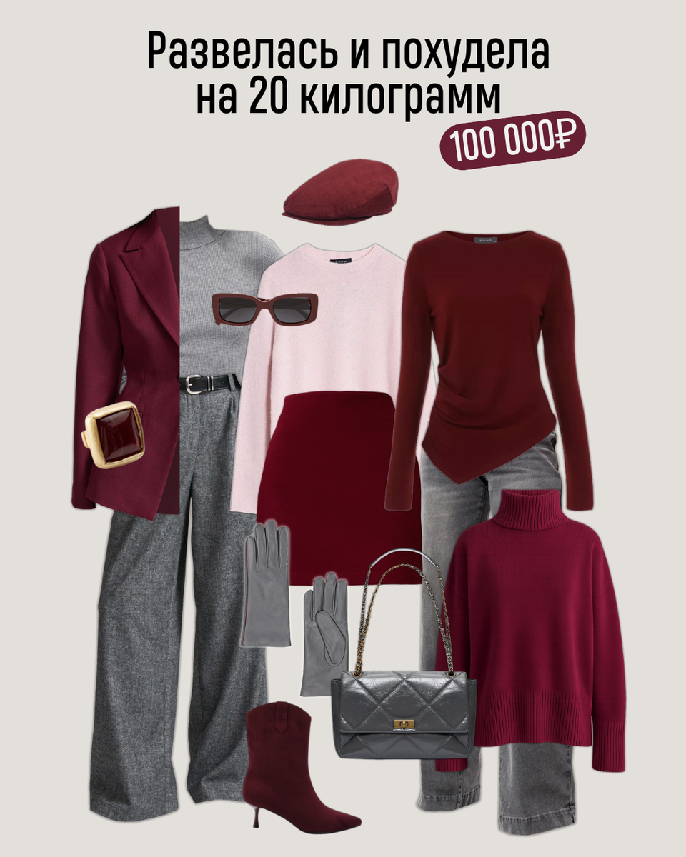 И денег заработала. Записалась на заплыв в Дубае в декабре. Двое детей остались с ней. ⠀ Чувствует себя, как будто сбросила балласт и взлетела. Буквально минус 20 килограмм за 4 месяца. ⠀ Мы одевали Н. раньше: сдержанный casual, чтобы удобно было бегать по работе и по кружкам-магазинам. ⠀ Хороший клиент: вещь подошла по размеру, села – купила. На вопрос «Как вы себя в этом чувствуете? Нравитесь себе?» не отвечала – в чате так можно. ⠀ А это – другая, новая: стрижку поменяла, цвет волос – ну, вы знаете. ⠀ «У меня, – говорит, – Бостонский брак: сняли большую квартиру с подругой, помогаем друг другу с детьми, никаких вопросов по хозяйству, кто готовит, мусор там. Кайф! Я себе ужасно нравлюсь, просто кайфую от себя каждый день. И хочу, чтобы одежда это тоже отражала. Чтобы такой вайб был, секси, но недоступный. Типа «Хочешь, мальчик? Не получишь!» ⠀ Мы сделали растяжку из 🩷розового в 🍷бордо + 🩶базовый серый. Структурный силуэт, с облеганием. И мини добавили – такие ноги! К юбке бо