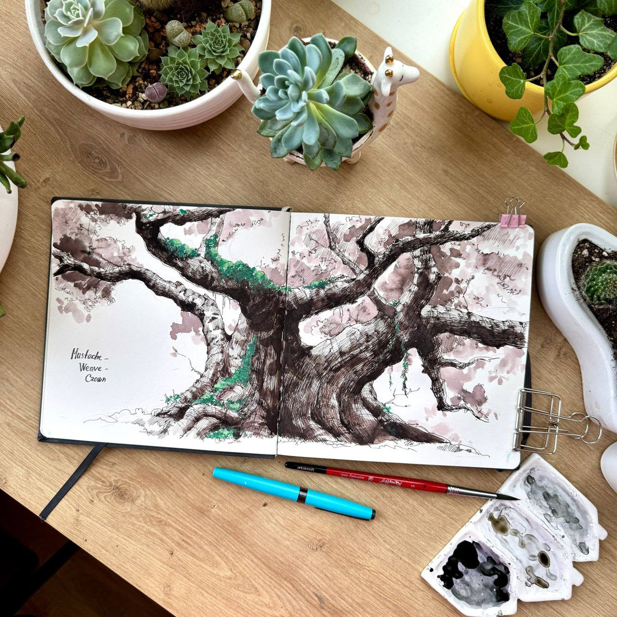 ✓ Показываем, что уже успели нарисовать: 1. Раскидистое дерево, которое увивают моховые усы (mustache), переплетение ветвей (weave) и могучая крона (crone) 2. Мрачный пейзаж с мутным водоемом (murky) и оленем (deer) 3. Густой лес, пронзенный (pierce) лучами света и населенный танцующими в лучах насекомыми (sting, тема 11 дня) 👀 И пока мы готовим новый блок уроков, посвященных второй неделе Инктобера - вы можете присоединиться к группе и рисовать в хорошей компании! Актуальная стоимость 1190Р Больше информации и запись здесь ▼▼▼ https://monecle.com/lg/dariart/inktober_2025_1/