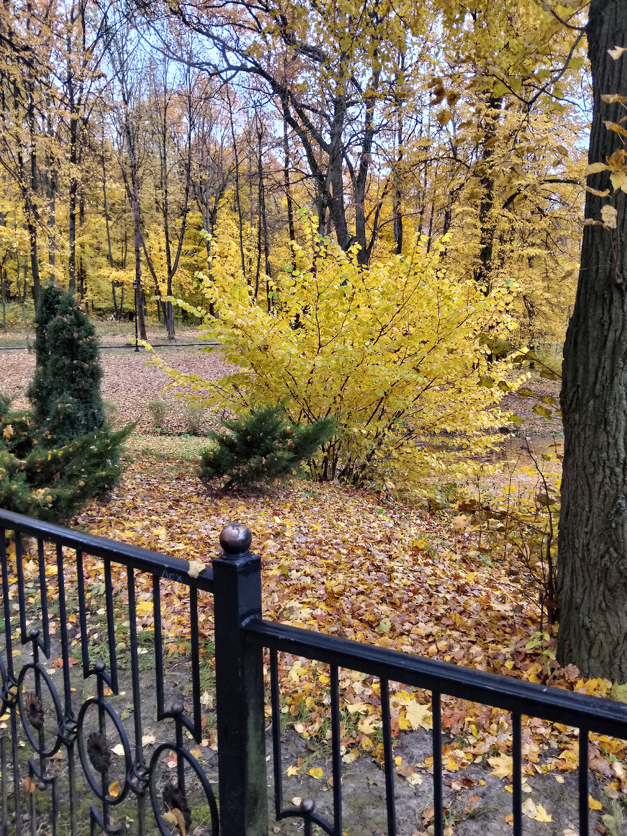 Проснулась от стука дождя по окну. Темно. Даже не поняла сначала, что уже утро, пока не посмотрела на часы в телефоне. Да, что-то рано в этом году ноябрьская погода началась. Холодно, сыро и серо. Жаль, я так надеялась на теплую осень! Как сегодня с ребенком гулять? Сидеть целый день дома тоже не хочется. И вот к обеду дождь прекратился! Да, небо серое. Да, ветер холодный. Да, сыро и серо. Но ведь за шиворот вода не льётся, значит можно гулять!. И вот что я скажу, люди, одевайтесь по погоде и будет вам счастье! Мы свою порцию счастья сегодня-таки получили. Пробежались за ним метров сто по двору и ещё столько же по улице. И вот... Мы в парке! А там... Празднично, нарядно, легко. Парк стал чуть прозрачнее, Почему-то хочется сказать, звонче. Может оттого, что людей мало и каждый детский голосок разливается колокольчиком, никем не перечёркнутый. А краски какие! Лучшая в мире акварель пошла на наш парк! Поделюсь с вами красотой и радостью. Пусть и вам этой хмурой порой везёт . Кра