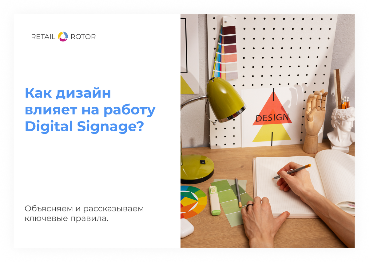 Спешим вас огорчить (не намеренно, конечно): в этих рассуждениях вы упускаете главную деталь. Просто «работать» экрану недостаточно для того, чтобы привлекать новых клиентов и увеличивать продажи. Ему необходимо каким-то образом цеплять внимание посетителей, чтобы контент был действительно заметен. К сожалению или к счастью, развитие технологий ещё не дошло до того, чтобы приделать каждому рекламному телевизору руки, которые могли бы останавливать клиента и поворачивать его взгляд на себя. Зато существует такая вещь, как дизайн, которая может в разы повысить эффективность работы экрана. Именно о значимости дизайна для полноценной работы Digital Signage мы поговорим в этой статье.