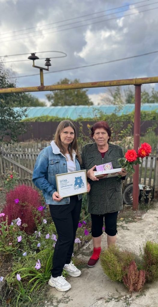 В преддверии Дня работника сельского хозяйства и перерабатывающей промышленности работники Прогрессовского сельского Дома культуры, совместно со Штабом общественной поддержки Волгодонского местного отделения Партии «Единая Россия», поздравили на дому Антонину Анатольевну Яблуновскую, которая 18 лет отработала в сфере сельского хозяйства посёлка Прогресс.