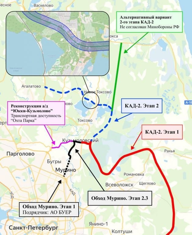 Забота о личной безопасности водителей и пассажиров не позволила военному ведомству согласовать альтернативный маршрут второго этапа дальнего обхода Петербурга. 47news цитирует этот протест. Стало известно, почему в Министерстве обороны выступили решительно против прохождения КАД-2 по землям Ржевского полигона во Всеволожском районе. Вариационную схему большого проекта, где один из сценариев не был согласован с военным ведомством, в начале августа в своём телеграм-канале губернатор Ленобласти Александр Дрозденко. Тогда же глава региона попросил повременить со вторым этапом КАД-2. При этом в письме на имя вице-премьера Марата Хуснуллина Дрозденко указал на два других дорожно-строительных всеволожских приоритета: дорога Юкки — Кузьмолово и I и II этапы обхода Мурино. По информации 47news, альтернативный вариант второго этапа КАД-2 военные забраковали, так как он подразумевал прохождение трассы по западной оконечности Ржевского полигона. При этом "ржевский" вариант рассматривался как од