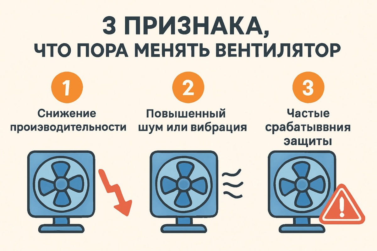«3 признака, что пора менять вентилятор» 1️⃣ Снижение производительности — воздух еле “дышит”, а потребление выросло. 2️⃣ Повышенный шум или вибрация — значит, подшипники просят пенсию. 3️⃣ Частые срабатывания защиты — мотору тяжело. Стоит проверять состояние вентиляторов хотя бы раз в сезон — вовремя заменённый узел сэкономит и деньги, и нервы. Осевые, радиальные, крышные и взрывозащищённые модели — подберём под любой объект. ⏱Оптимальные сроки поставки. 🚗Доставка по всей всей России. 📞 +7 (812) 200-82-26 ✉️ zapros@oborudrus.ru