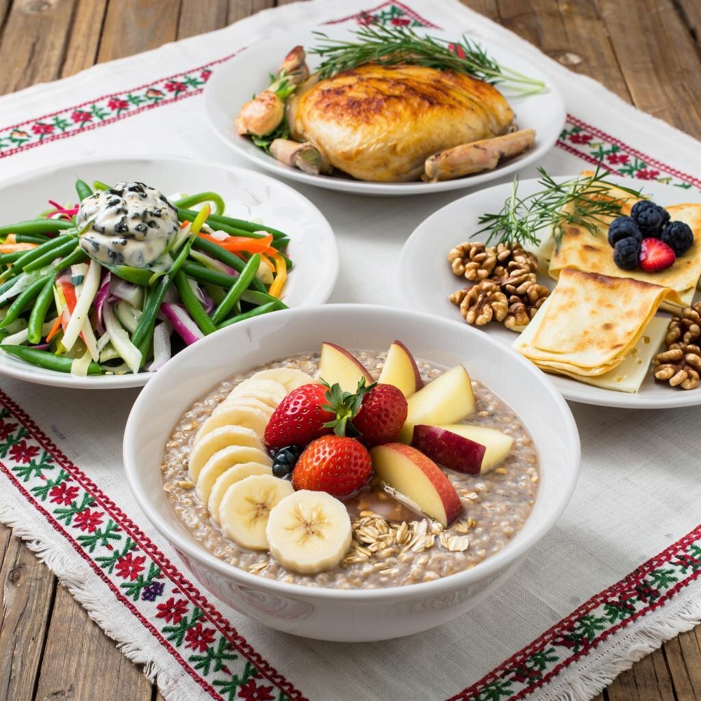 Здоровое питание не обязательно требует дорогих и редких ингредиентов. Совсем наоборот — правильное питание вполне можно организовать из доступных продуктов, которые есть в каждом доме или ближайшем магазине. Ниже—пять простых и полезных рецептов, которые легко впишутся в ваш повседневный рацион и помогут поддерживать здоровье и бодрость. 1. Овсяная каша с фруктами и орехами Овсянка — отличная база для завтрака: она насыщает энергией и полезными веществами. Для улучшения вкуса добавьте свежие или замороженные ягоды, яблоко, банан. Горсть грецких орехов или миндаля придадут блюду нужные жиры и белок. Ингредиенты: - Овсяные хлопья — 50 г - Молоко или вода — 200 мл - Ягоды или фрукт на выбор — 100 г - Орехи — 20 г - Немного меда или корицы для вкуса 2. Легкий салат с фасолью и свежими овощами Фасоль — отличный источник растительного белка и клетчатки. В сочетании со свежими овощами получится сытный и полезный салат. Ингредиенты: - Консервированная или отвар
