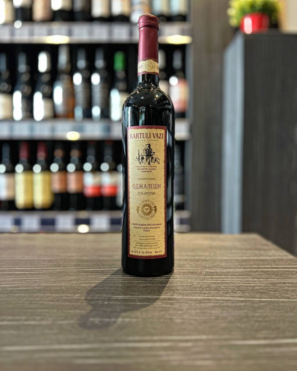 Грузинское красное полусладкое вино "Kartuli Vazi" производится из винограда сорта Оджалеши, культивируемого в окрестностях села Орбели, в регионе Рача-Лечхуми.