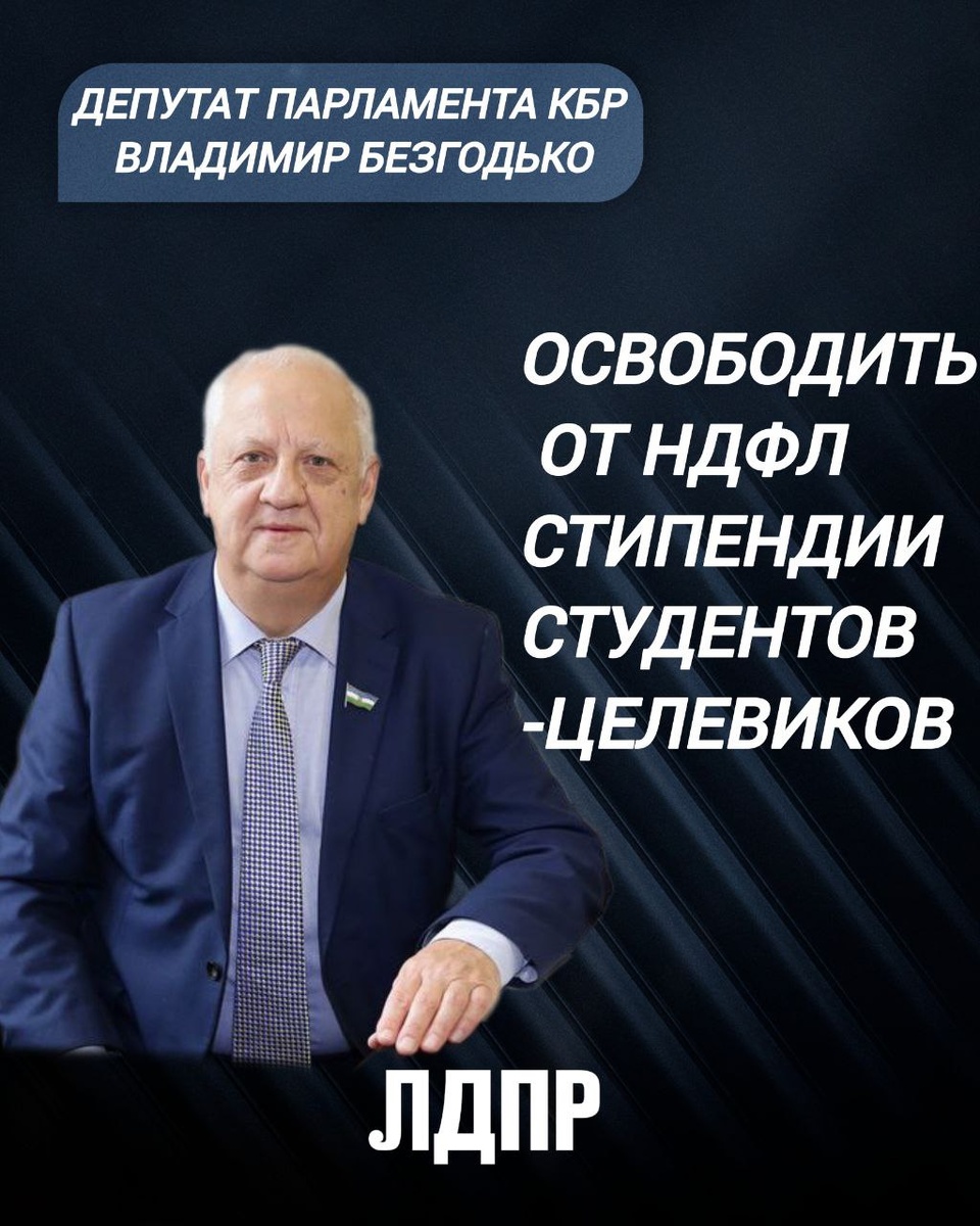 Депутаты от фракции ЛДПР выступили с инициативой освободить от уплаты налога на доходы физических лиц (НДФЛ) стипендии, назначаемые студентам-целевикам по договору целевого обучения. Председатель ЛДПР Леонид Слуцкий подчеркнул, что целевое обучение является важным механизмом «Новой индустриализации России», так как промышленные предприятия остро нуждаются в квалифицированных кадрах. Он отметил несправедливость текущей ситуации, когда целевые стипендии облагаются налогом, в отличие от других видов поддержки. «Такая материальная помощь целевикам позволяет им сосредоточиться на учёбе и не задумываться о подработке. Это благое дело, и его надо всячески поощрять», – заявил Слуцкий, призвав уравнять статус целевых стипендий с другими и освободить их от НДФЛ. Инициативу поддержал депутат Парламента КБР Владимир Безгодько, отметив её актуальность для Кабардино-Балкарской Республики, испытывающей нехватку кадров.