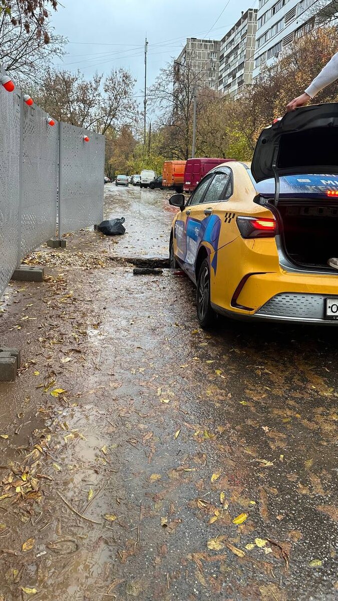 Прокладывали трубы, засыпали щебнем, после дождя грунт просел и образовалась яма.