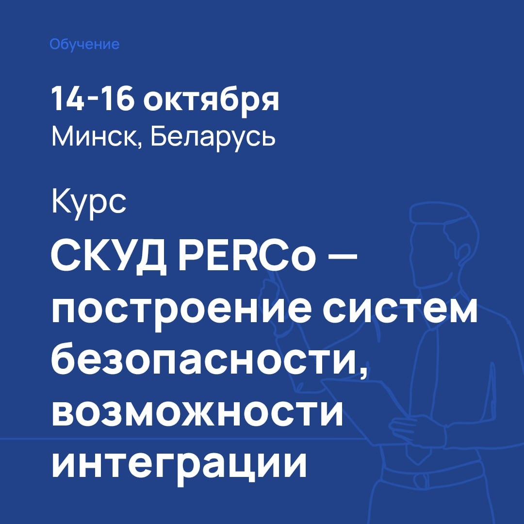 PERCo проведет обучение в Минске Курс включает в себя: ▪️принципы построения систем безопасности на базе оборудования PERCo; ▪️функционал и новые возможности интеграции системы PERCo-Web; ▪️особенности монтажа оборудования и практические навыки настройки системы; ▪️обзор интеграционных возможности программного обеспечения. По итогу обучения участникам будут выданы сертификаты. 14-16 октября 2025 года в 10:00; Минск, ул. Якуба Коласа 22, ауд. 410 «Лаборатория инженерно-технической безопасности БНТУ-АЭРКОМ». Регистрация @perco