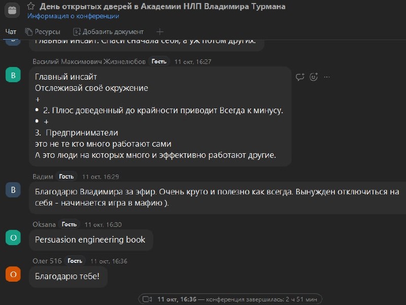 🔥 Спасибо всем, кто был в прямом эфире и досмотрел встречу до конца. Каждый участник получил эксклюзивный подарок - руководство “НЛП в маркетинге”, которого нет в открытом доступе. А теперь - бонус для самых активных Оставь отзыв (вертикальное видео или развернутый текст) о встрече (в комментариях ) и получи в подарок технику “Клетка для дракона”. Это мощный инструмент из арсенала Владимира Турмана, который помогает прорабатывать внутренние блоки и страхи, мешающие действовать. Если ты не успел попасть на эфир - не страшно. Руководство “НЛП в маркетинге” и запись встречи можно приобрести: - Руководство: 3 000 ₽ - Запись эфира: 2 000 ₽ Для оформления напиши Елизавете @Lizaveta_Kash И помни: маркетинг будущего - это не про креатив. Это про точную настройку сознания. 🔶Если после эфира ты почувствовал, что хочешь большего - системного рывка, а не очередного инсайта, следующий шаг - годовая мастер-группа "Искусство делать деньги" / "Искусство делать деньги для предпринимателя" в