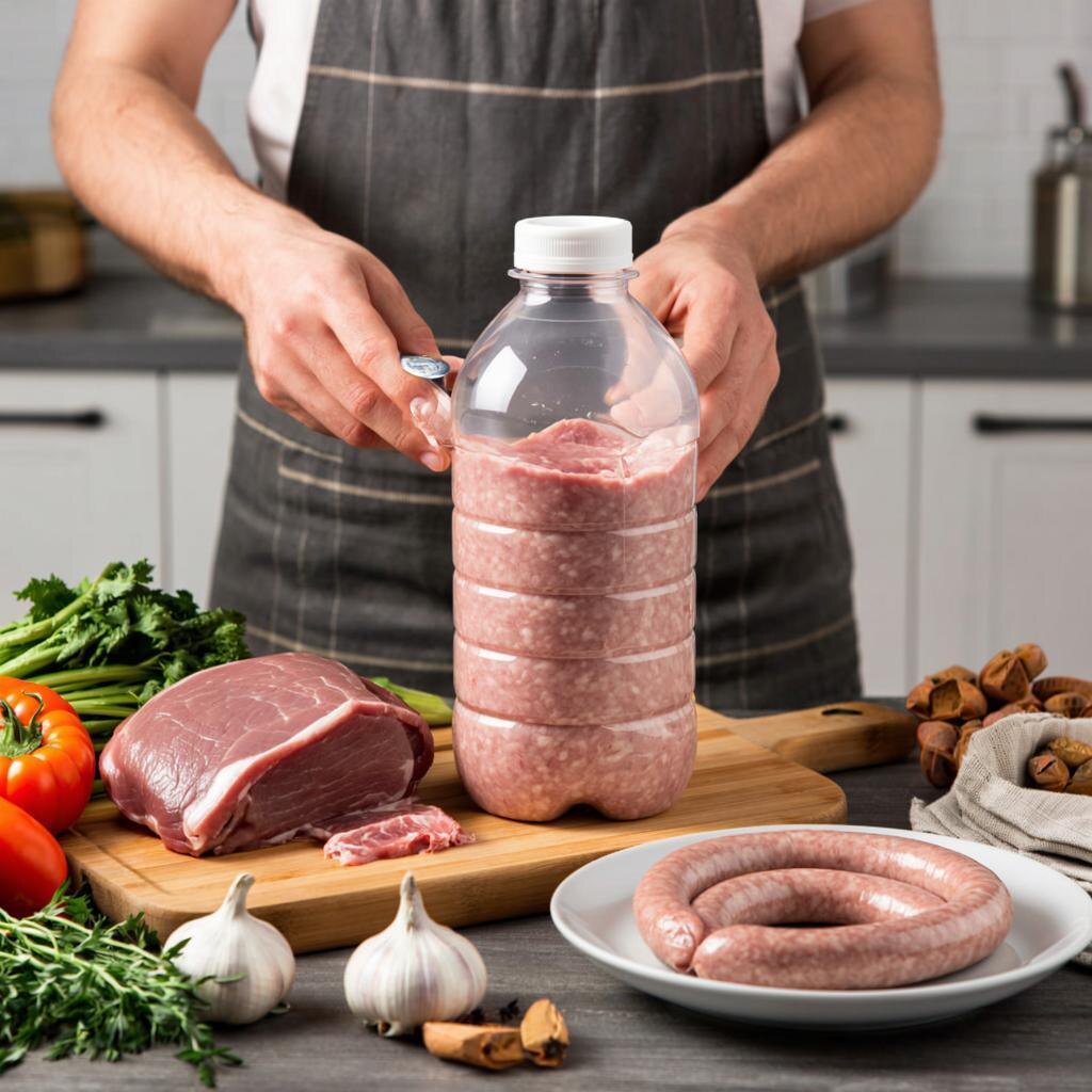 В домашних условиях можно приготовить не только вкусные блюда, но и колбасу, которая будет качественнее и полезнее магазинной. Особое место занимает домашняя куриная колбаса — она нежная, легкая и отлично подходит для семейного обеда или перекуса. Ингредиенты: -куриное филе — 1 кг -куриные грудки — 300 г -чеснок — 3 зубчика -соль — 1,5 ст. ложки -чёрный молотый перец — 1 ч. ложка -паприка — 1 ч. ложка -сухие специи по вкусу (тимьян, кориандр) — по 0.5 ч. ложки -холодная вода — 100 мл -натуральные кишки для колбасы (можно приобрести в мясных лавках) — около 1 м Пошаговое приготовление: Подготовка мяса. Курицу тщательно промываем, удаляем пленки и жилки. Нарезаем филе и грудки на небольшие кусочки для удобства дальнейшей обработки. Измельчение мяса. Пропускаем курицу через мясорубку с мелкой решеткой или измельчаем в блендере до однородной массы. Добавление специй. В мясо кладем соль, перец, паприку, чеснок, пропущенный через п
