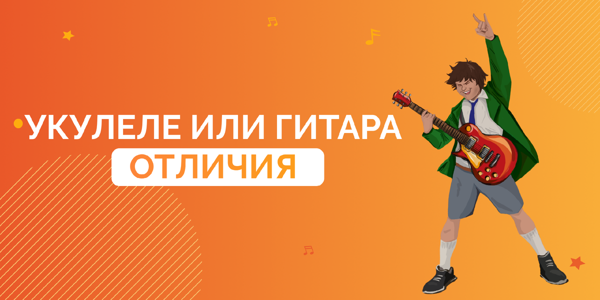 Гитара отличается от рассматриваемого другого струнного инструмента по двум основным параметрам: строю и диапазону звучания. Она предусматривает большее количество струн, следовательно, музыкант способен добиться более обширного звучания. На гитаре можно сыграть самые разнообразные мотивы. За счет смены толщины струн несложно оказать воздействие на звук и результат игры.