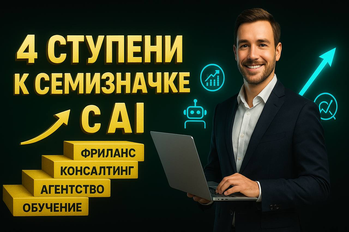Привет, это Риант. Представь, что ты начинаешь с чистого листа. Нет канала, нет денег, нет «подушки» и даже нет опыта в автоматизации. Что делать сегодня, чтобы заработать первые тысячи, а потом перейти к миллиону в год на ИИ-решениях? Ниже — рабочая схема, без воды и «магии». Я разложу путь на четыре ступени и дам ориентиры: сколько это занимает, какая сложность и какой потолок по деньгам. И главное — что делать прямо сейчас на каждой ступени.