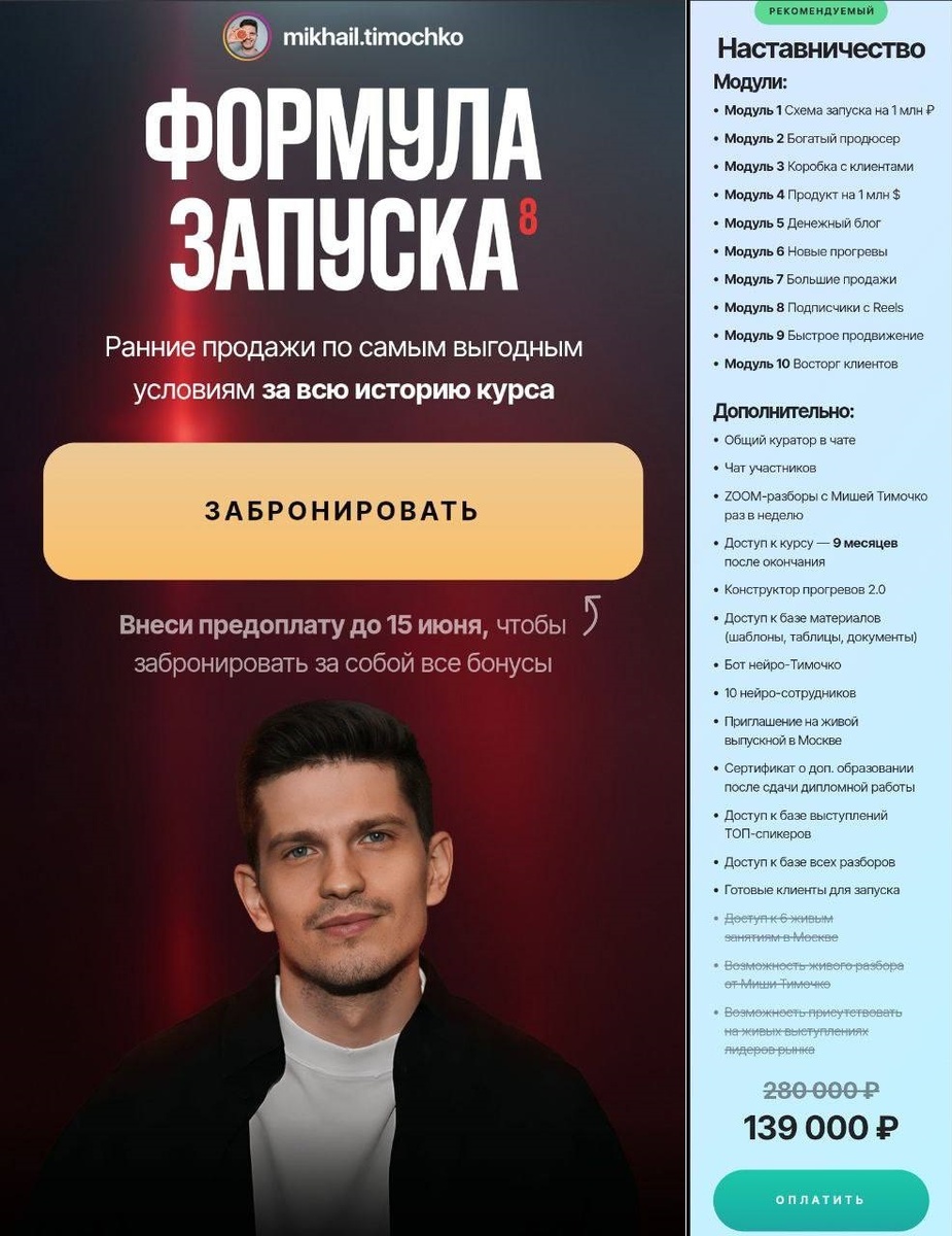 Тимочко Михаил Формула Запуска 8.0 Тариф Наставничество 2025 слив курсы скачать курс отзывы разоблачение mikhail.timochko Миша Тимочко запуски Это для тебя, если ты: Спикер курса Михаил Тимочко: Модули: