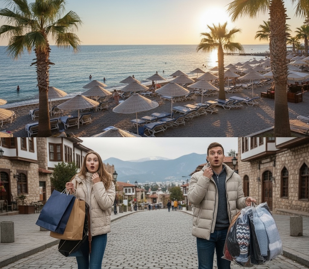 Привет, друзья и любители Турции! С вами Ольга, TURKISH CHEF и мы на Анталийском побережье. Еще неделю назад тут была настоящая, полноценная жара. Мы ходили в шортах, плавились от солнца и искали тень. И вдруг... бац! Осень пришла в Турцию не стучась, а с ноги! Драматическое похолодание: Или "Где мое худи?" Да, я не шучу. Ещё пару дней назад термометр показывал +30, а сейчас, когда я пишу эти строки, на улице всего лишь около +25-27 градусов днем! (Для тех, кто привык к +35 - это уже похолодание, не так ли?😉). Самое ощутимое изменение — это вечера. Если раньше можно было гулять в одной футболке хоть до полуночи, то теперь после захода солнца реально хочется накинуть что-то потеплее. Ветра стали прохладнее, а ночные температуры опускаются до +17…+19. Мой личный совет: В октябре-ноябре на Анталийском побережье действует правило "Днём - лето, вечером - осень". Но есть и ОГРОМНЫЙ плюс! Вы думаете, что похолодало – и всё, купаться нельзя? Как бы не так! Море тут — это отдельная истори
