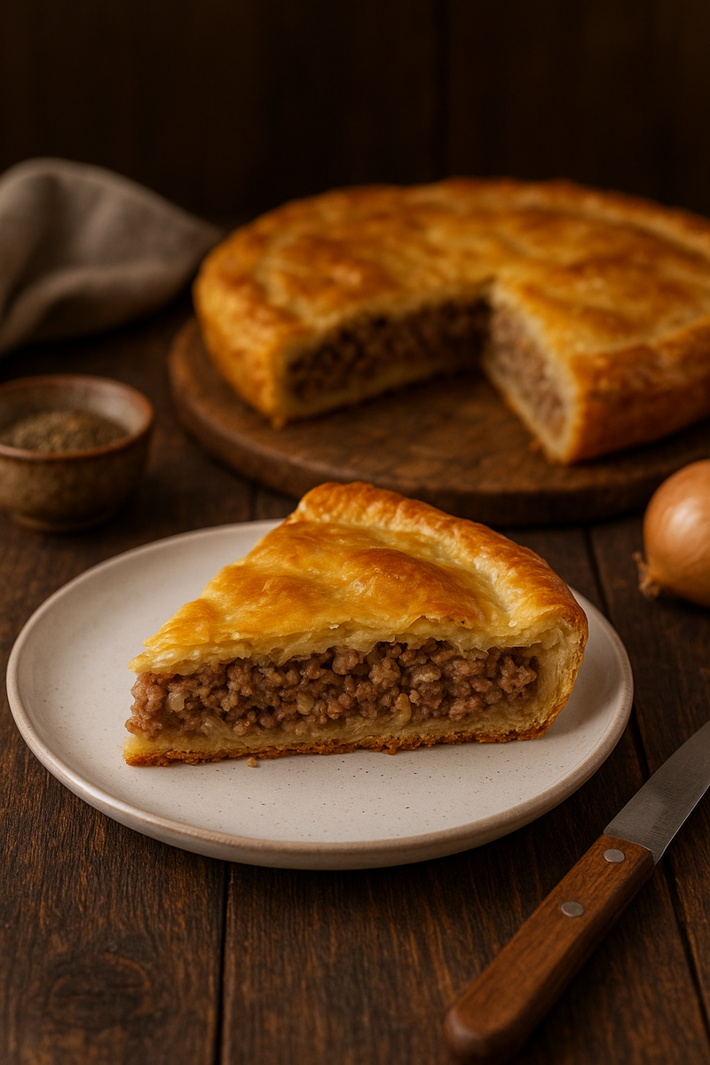 Когда в доме пахнет свежей выпечкой с мясом, даже самые хмурые лица расплываются в улыбке. Мясной пирог - это символ сытного обеда, душевных посиделок и домашнего тепла. Хрустящее тесто, сочная начинка и золотистая корочка превращают обычный день в маленький праздник. Этот рецепт проверен временем: он сочетает простоту приготовления и невероятный вкус. Мясной пирог - это не просто блюдо, а кусочек домашнего уюта, который объединяет всех за одним столом. Он вкусен как в горячем виде, так и в холодном.