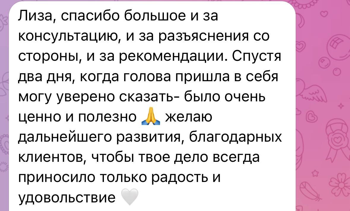 💫 ДАРЮ КОНСУЛЬТАЦИЮ ДЕТСКОГО ПСИХОЛОГА 🔡то мой первый отзыв от клиентки после нашей с ней сессии. Разбирали отношения ребенка и отца. Благодарю за доверие и обратную связь! Напоминаю, что сейчас обучаюсь на детского психолога, багаж знаний уже пополнен: курсом об агрессии института Г. Ньюфелда, профпереподготовкой на работника по уходу и присмотру за детьми, собственным опытом, изучением практики современной педиатрии И поэтому в рамках обучения и набора практики с радостью готова поделиться знаниями БЕСПЛАТНО в условиях одной сессии. Конечно, за одну сессию невозможно ответить на все вопросы, но вы сможете сделать первый шаг навстречу к решению волнующих вас ситуаций с детьми. Запись в л/с @Litaveta #спросиЛизу #ликбезPsy #услуги@inceptionmom #отзывы@inceptionmom