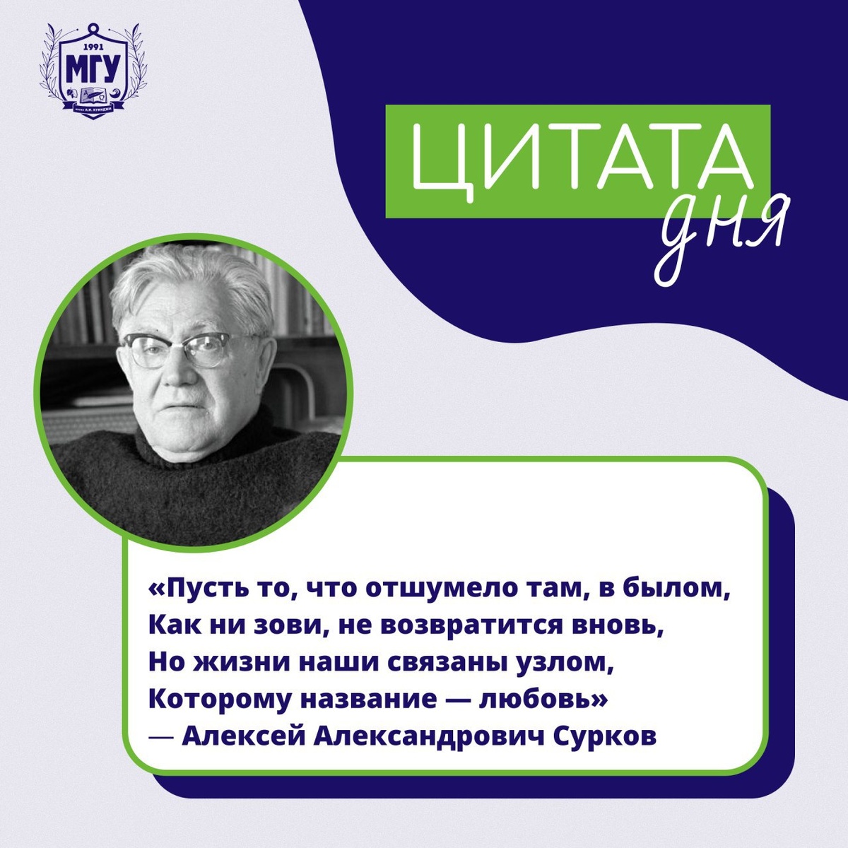 #цитата_дня Он умел передать самое важное через простые слова. Его стихи звучали не только со сцены, но и в землянках, у костров и в сердцах солдат. 🩵 🩵 13 октября 1899 года родился Алексей Александрович Сурков — русский советский поэт, журналист, военный корреспондент. Автор текста песни «Бьётся в тесной печурке огонь», ставшей символом солдатской памяти. 🩵 🩵 🩵 В годы Великой Отечественной войны Сурков писал очерки и стихи прямо на фронте, обращаясь к тем, кто сражался. Его строки помогали выстоять, напоминали о доме и о том, за что и ради кого живут. 🩵 🩵Интересный факт: «Бьётся в тесной печурке огонь» была написана в ноябре 1941 года в подмосковных лесах, когда Сурков находился в расположении войск. Песня быстро разошлась по фронту и обрела статус народной. 👻 MAX|💙ВК|📝Дзен|🤩Сайт #МГУимениКуинджи