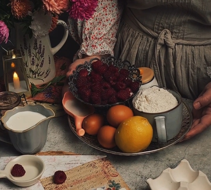 На кухне витают ароматы. Сначала — ванильного бисквита, того самого, что пекла бабушка. Теплый, уютный запах, который обнимает дом. Потом его сменяет яркая, фруктовая нота — это малина превращается в ягодное пюре, её капля падает на стол, как маленькая рубиновая слеза.А потом наступает время магии. Рикотта.Не крем-чиз,а именно рикотта. Она другая. Более нежная, легкая. Перемешиваешь её с сахарной пудрой и малиновым пюре — и она становится похожа на облако в закатных лучах. Розовое, воздушное, с вкраплениями ягод. Без сложных декоров и идеальных линий. Только вкус. Только текстуры.Отламываешь вилкой кусочек... И вот оно: невесомость бисквита, кремовая прохлада рикотты и взрывная, летняя сладость малины.Вкус, который просит тишины, хорошей книги и мягкого пледа. Чтобы растянуть это наслаждение подольше. Начнём? Нам понадобится: 4 яйца 250 сахара 250 муки 150мл сливок 20% 10г Разрыхлителя 10г ванильного сахара 5 г ванильного сахара с цедрой апельсина Цедра 1 лимона или апельсина 150г с