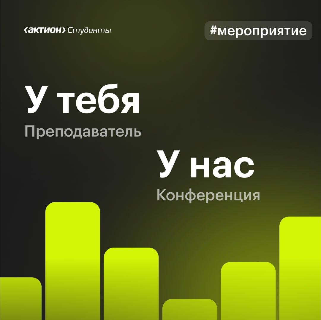 Наверняка ты знаешь преподавателя, который не просто учит предмету, а горит своим делом. Расскажи ему про крутую конференцию от Актион Студенты и получи плюсики в карму :) Мероприятие называется «Вызовы нового времени в высшем и среднем профессиональном образовании», пройдет 22 октября в удобном онлайн-формате. Обсудим трансформацию образовательной среды: нейросети и искусственный интеллект, реформу образования, особенности работы с поколением «зумеров». Участие бесплатное! Ждем 3000+ слушателей из 80 регионов. На конференции будет три блока: На мероприятии выступят топовые спикеры из лучших российских вузов, а также представители бизнеса. Все слушатели получат сертификат об участии в конференции. Твой любимый препод точно такое оценит. Помоги ему быть в тренде и скинь ссылку на регистрацию Приятный бонус: участники конференции получат скидку 40% на программу повышения квалификации с удостоверением установленного образца на 72 часа «Искусственный интеллект и цифровые инструменты в рабо