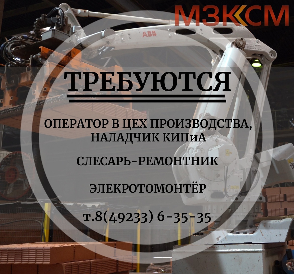 АО «МЗКСМ» на ст. Мстера приглашает в дружный коллектив на постоянную работу со стабильно высоким заработком: 🔸️оператора в цех производства кирпича, наладчика КИПиА; 🔸️слесаря-ремонтника; 🔸️электромонтера. 📍 Проезд служебным автобусом из г. Вязники, п. Мстера, п. Лукново. 📞 Тел 8 (49233) 6-35-35. #работа