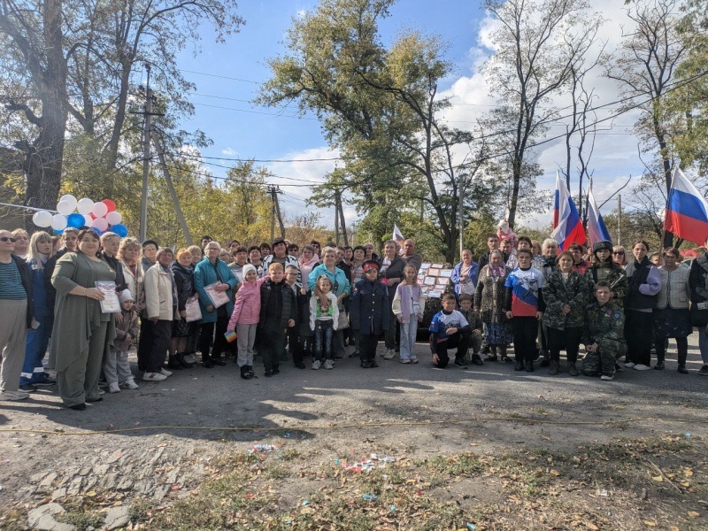 По поручению депутата Законодательного Собрания Ростовской области Дмитрия Суворова активистам группы были вручены благодарственные письма за их самоотверженный труд и неоценимый вклад в общее дело помощи фронту. Группа «Мы рядом» была образована 12 октября 2023 года и сегодня объединяет 650 человек из разных городов России. Волонтеры курируют 27 подразделений на различных направлениях, и за два года передали более 70 тонн гуманитарного груза. Праздничное мероприятие прошло в теплой и душевной атмосфере. Были приглашены мамы военнослужащих, открыта Доска памяти, юные участники группы подготовили творческие и спортивные выступления. После концерта все вместе плели маскировочные сети, пили чай. Волонтеры приготовили сладкие угощения, которые раздавали за благотворительные взносы, а также организовали выставку трофеев. Руководитель группы Юлия Роскошная рассказала о том, как начиналась работа объединения: – Сначала помощь оказывали только нашим ребятам из поселка, и в группе состояло чуть