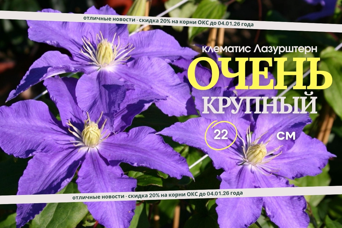 Это проверенная временем классика, выведенная в начале XX века и до сих пор сохраняющая популярность у садоводов по всему миру. Эффектный ранне-летний фаворит - клематис Лазурштерн с крупными лавандово-голубыми цветами, который освежит и гармонизирует пространство вокруг. Сорт относится ко 2 группе обрезки и цветёт дважды за сезон: в мае-июне на прошлогодних побегах и повторно в августе-сентябре на молодых. Бутоны первого цветения крупнее диаметром до 22 см, повторного от 14 см с волнистыми лепестками небесно-голубого тона, который меняется в зависимости от освещения — от более насыщенного до слегка пурпурного. Куст вырастает до 2,5–3,5 м в высоту (иногда до 4 м), прекрасно цепляясь за опоры и формируя обильный цветочный каскад. Зимостойкость сорта достигает −35°C, что позволяет выращивать его в большинстве регионов. 🚚 Отправка по всей России: СДЭК, Почта РФ, EMS-авиа. 🛒 ОФОРМИТЬ ЗАКАЗ: dolinaroz.ru